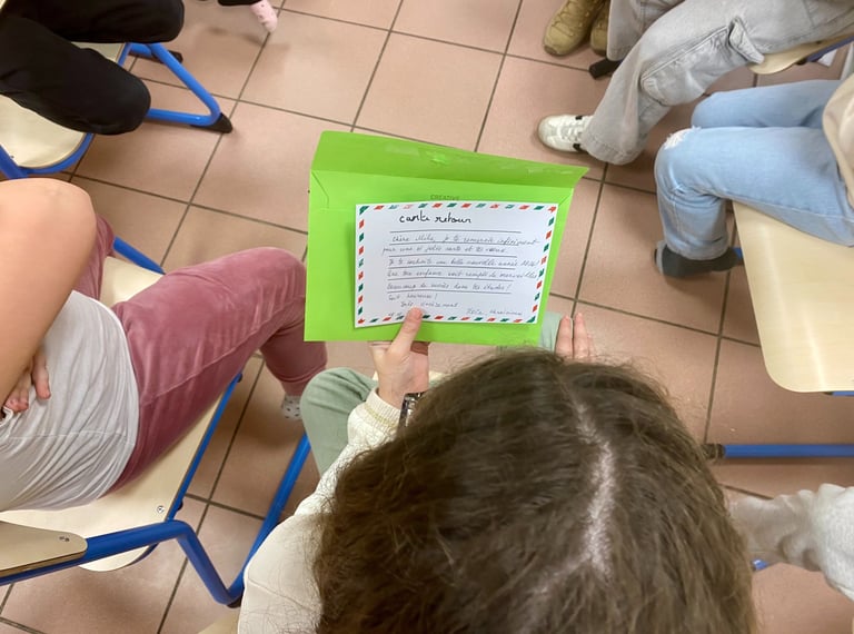 Un bon moment de partages où les enfants ont pu lire les cartes retour des sans -abri de la maison de l'amitié et des femmes de Aude Urgence Accueil en réponse à leurs vœux ! Une vingtaine en tout ! Un atelier pour vivre que c'est bon de faire du bien ! Un cercle vertueux qui fait vibrer les cœurs de chacun et permet de rapprocher les humains entre eux grâce à la considération. Des graines plantées pour cette fin d'atelier d'éveil à l'altruisme ! A refaire sans modération !