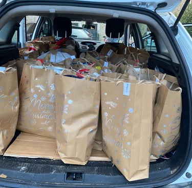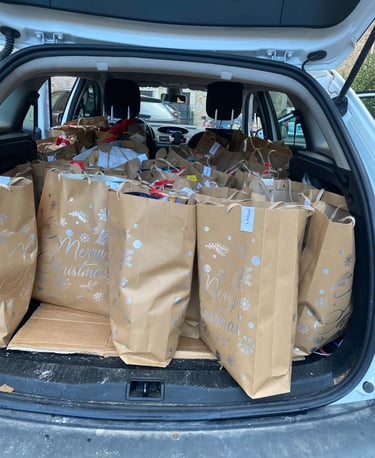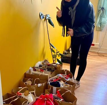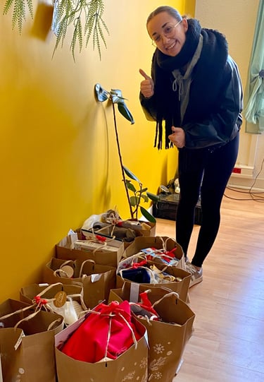 Distribution des boites cadeaux réalisées par l'association "parole de femmes 11". Beaucoup de générosité et de bonheur !