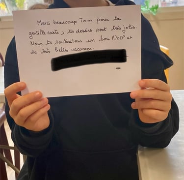 C'est avec joie que les enfants ont lu les cartes retour des habitants de Fabrezan ! Les messagers de l'altruisme en herbe ont eux aussi eu le bonheur de recevoir des messages bienveillants ! De quoi les inciter à l'être dans leur vie de tous les jours ! Car c'est sûr, donner et recevoir, ça rend heureux ! Merci aux enfants, à Angie et son équipe pour leur implication