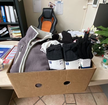 Maraude du 3 janvier, distribution de vêtements chauds, de colis de nourriture, de sac cadeaux et de considération. Merci aux bénéficiaires de nous permettre de pratiquer l'altruisme.