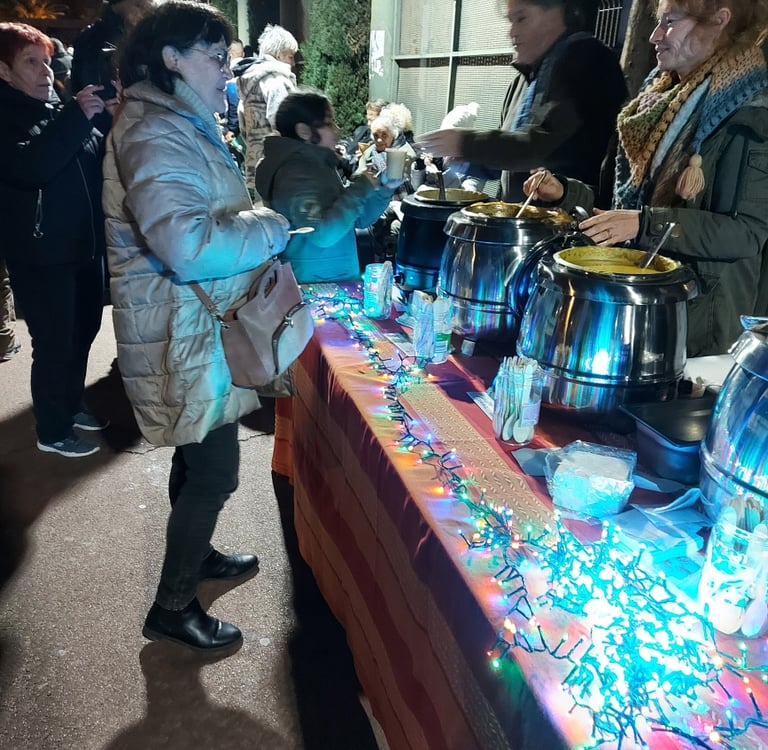 Collecte alimentaire, préparation et distribution de soupe et plats chauds en hiver en maraude.